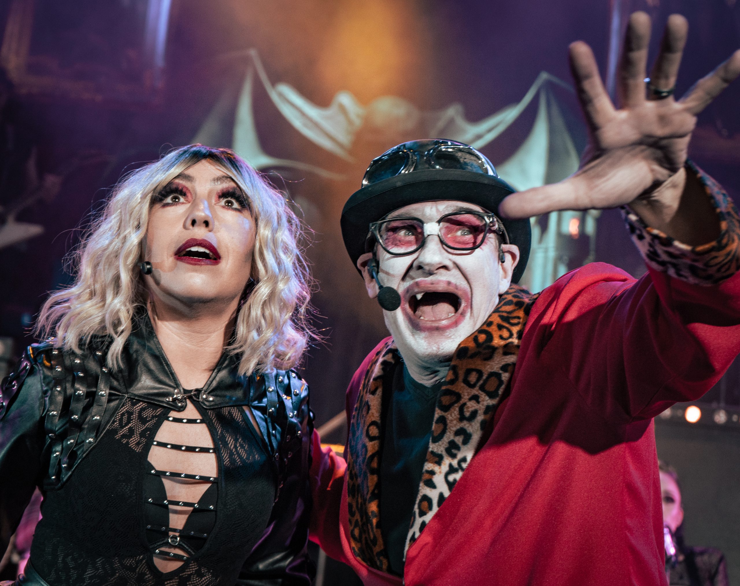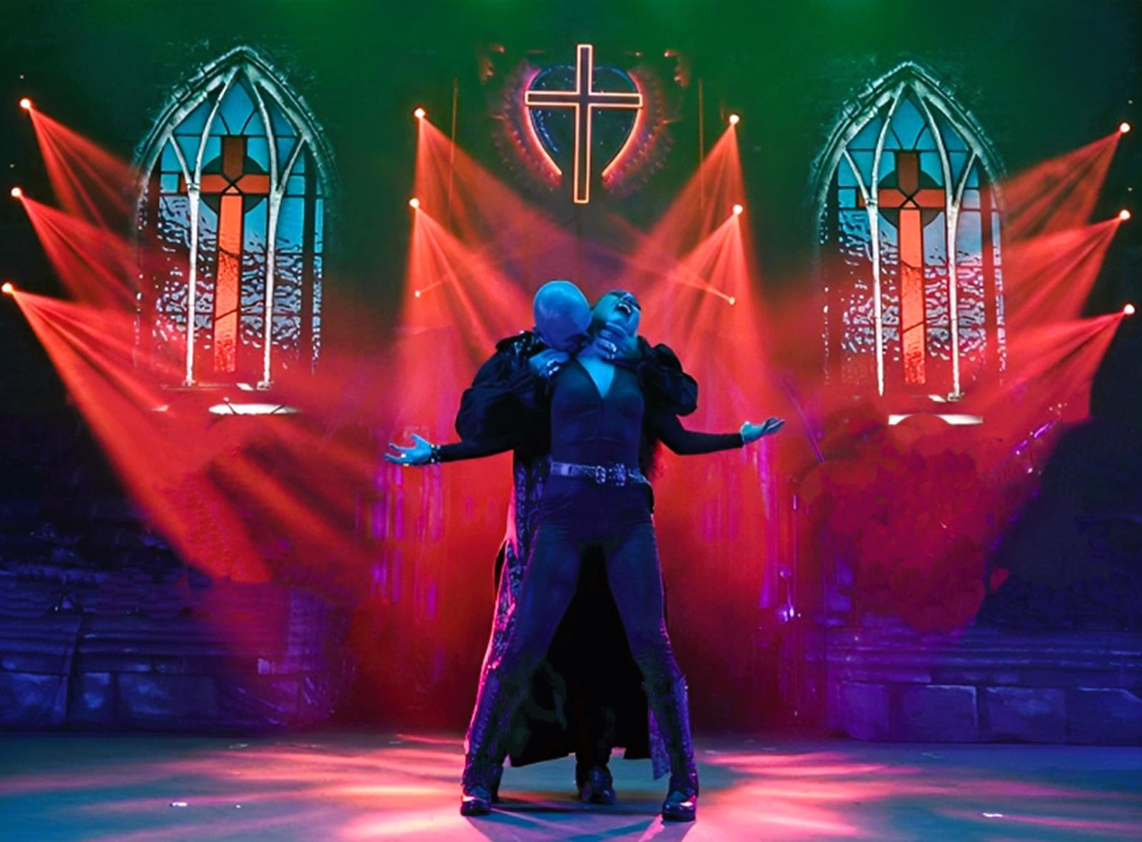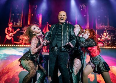 This critic is old enough to remember Steve Steinman’s iconic portrayal of the late, great Meatloaf on ITV’s Stars in their Eyes way back in 1993. This catapulted him in to instant stardom as he moved on tobigger and better things. Steinman has created quite a following. The queue from the merch stand this evening was testament to his popularity and his shows are clearly still engaging a large cult fan base in what was a packed out auditorium. Vampires Rock: Eternal Love the Musical is an ambitious mix of rock and musical theatre…